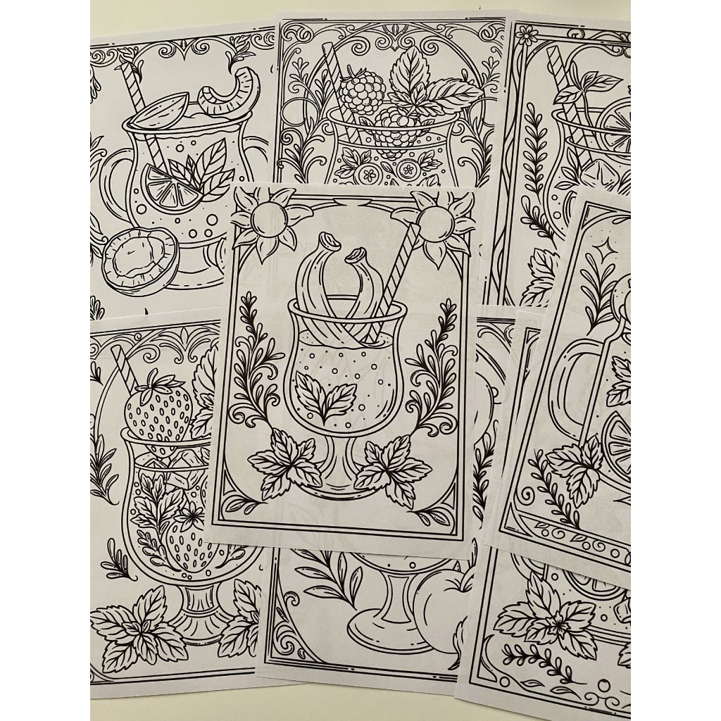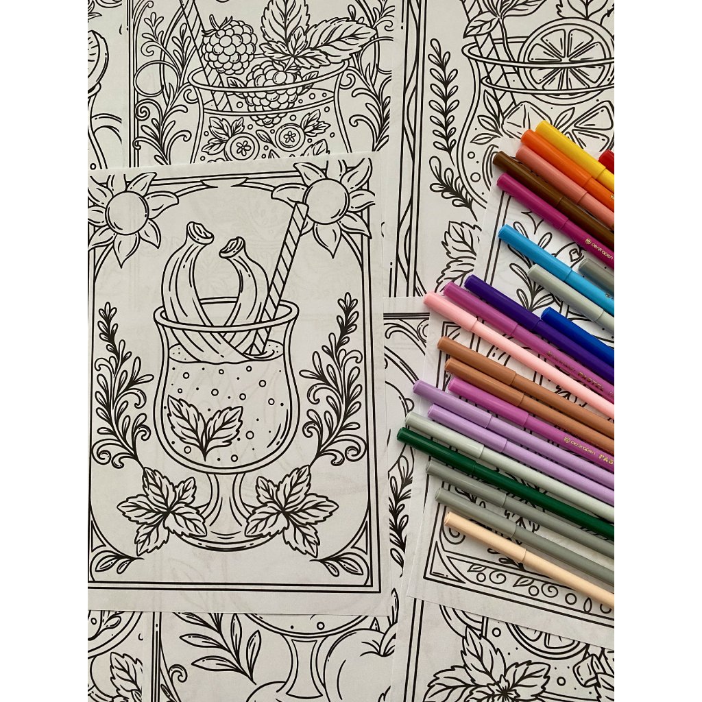 Dopřejte si relaxační chvilku plnou barev! Těchto 10 autorských omalovánek ve velikosti A4 vás přenese do světa osvěžujících letních drinků, které ožívají pod vašimi pastelkami nebo fixy. Každý obrázek je propracovaný do detailu a inspirovaný secesním stylem Alfonse Muchy – elegantní linie, jemné křivky a originální letní atmosféra.