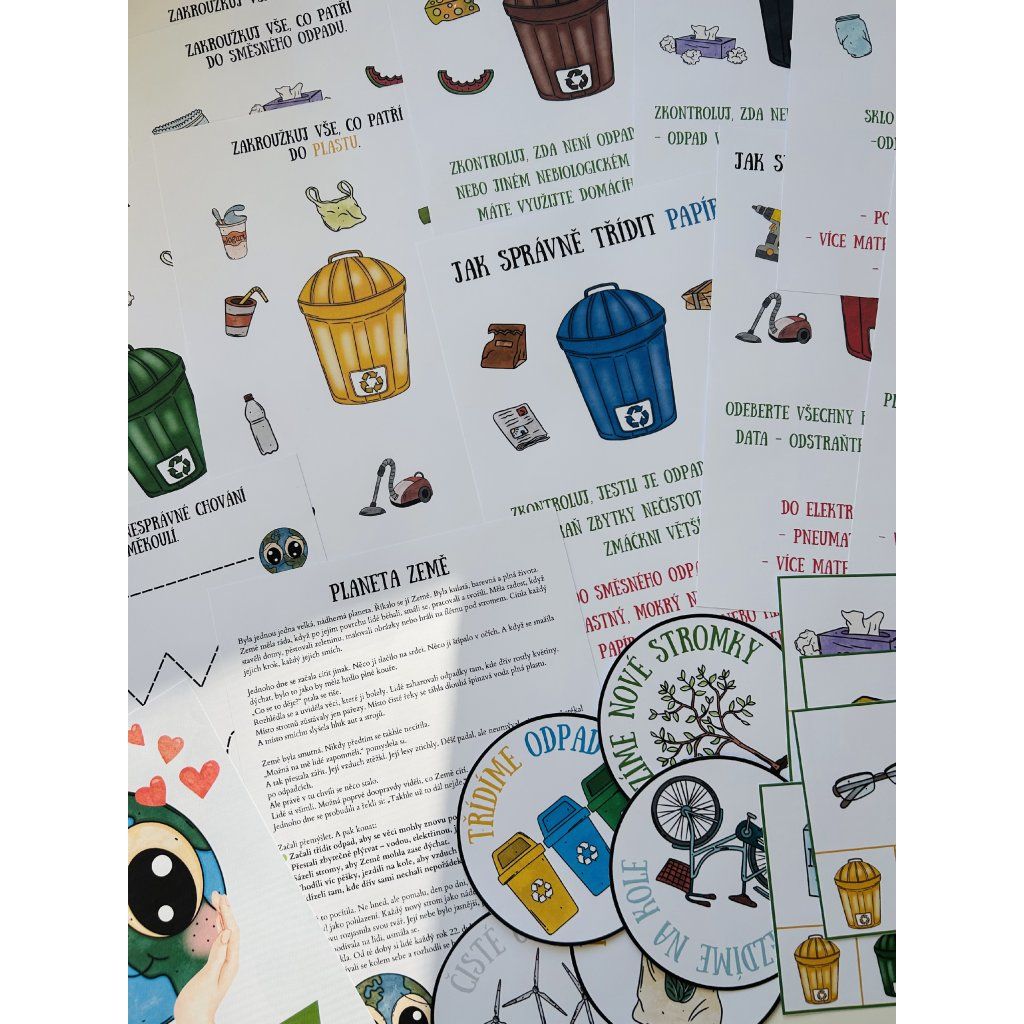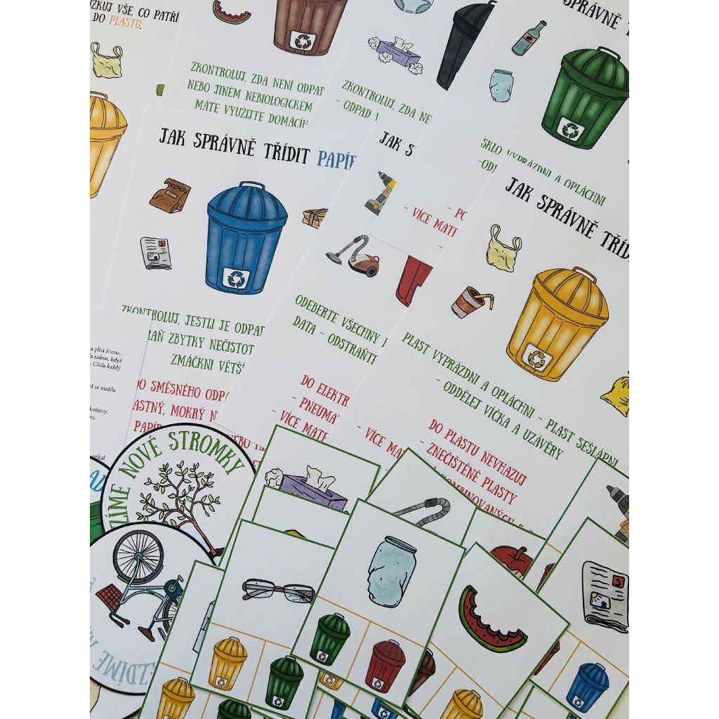 📌 24 kolíčkovacích kartiček – trénink zrakového vnímání a třídění odpadu.