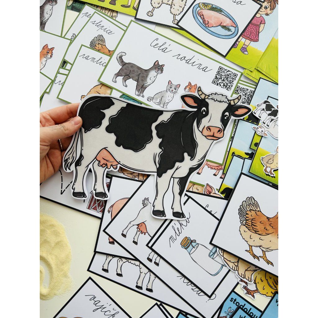 Děti poznávají samici, samce a mládě (např. kráva – býk – tele). Aktivita podporuje třídění, logické myšlení i řeč.
