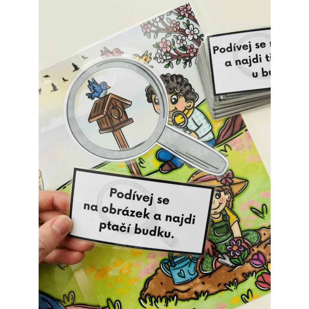 Naše doporučení: Vše kromě černobílého obrázku doporučujeme zalaminovat – kartičky tak můžete používat opakovaně. Pro ještě větší variabilitu můžete otázky schovat po třídě, udělat z nich pohybovou aktivitu nebo zapojit i starší děti jako čtenáře zadání.