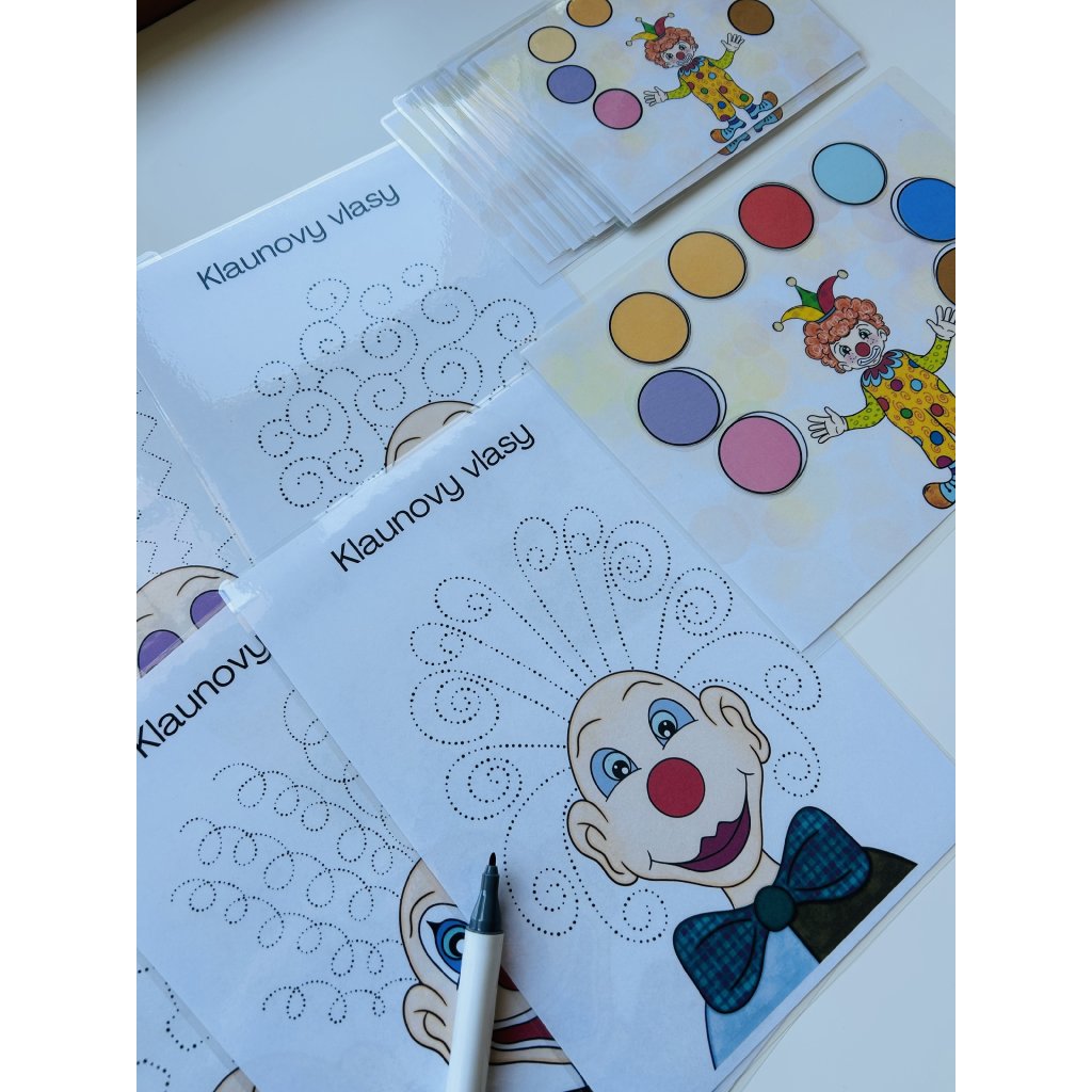 - Součástí je 6 pracovních listů s obrázkem klauna.