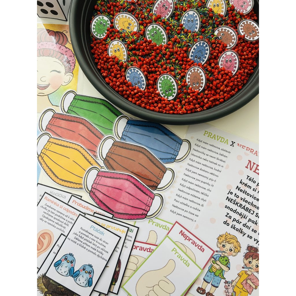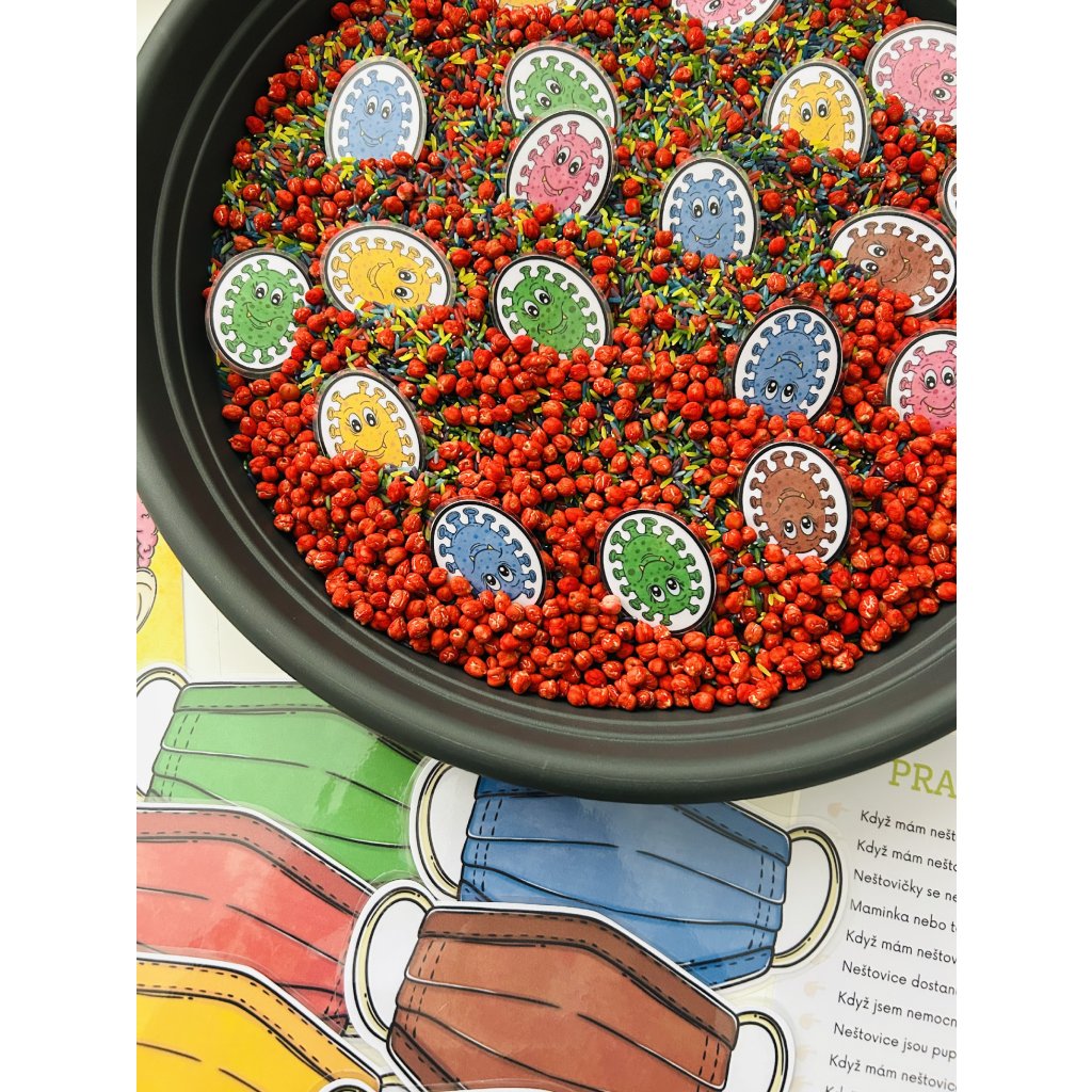 👉 Barevné roušky a bacily (sensory play)