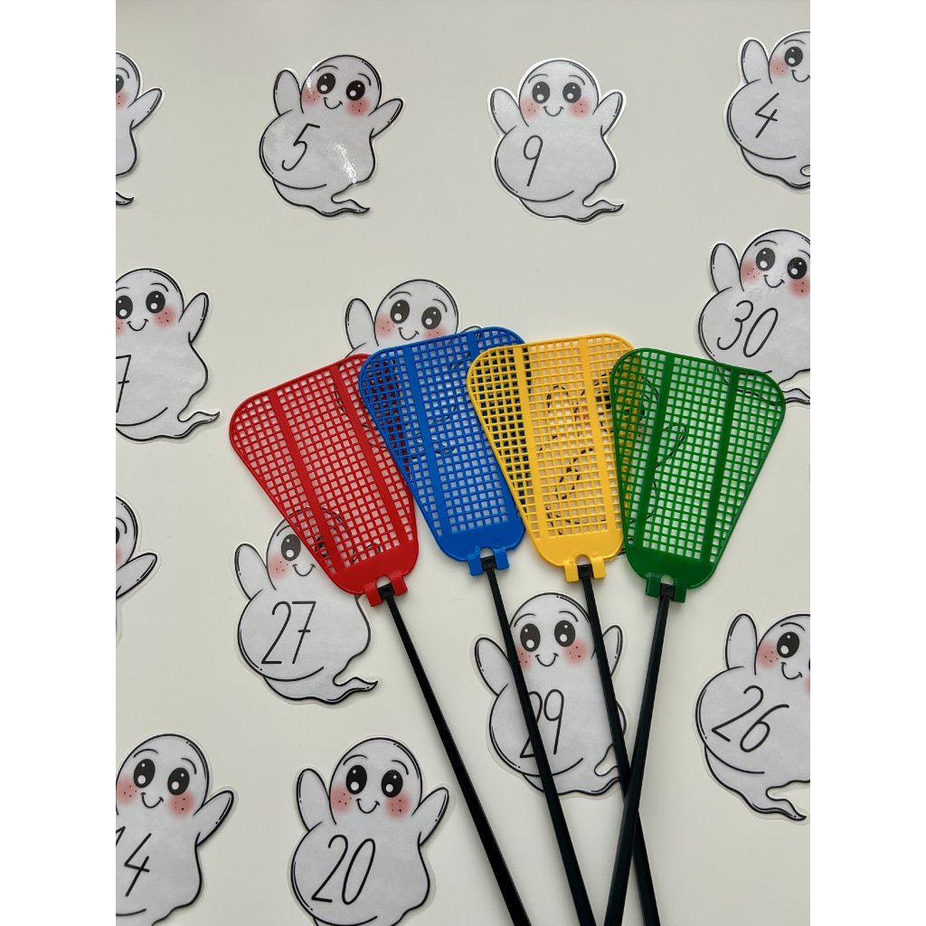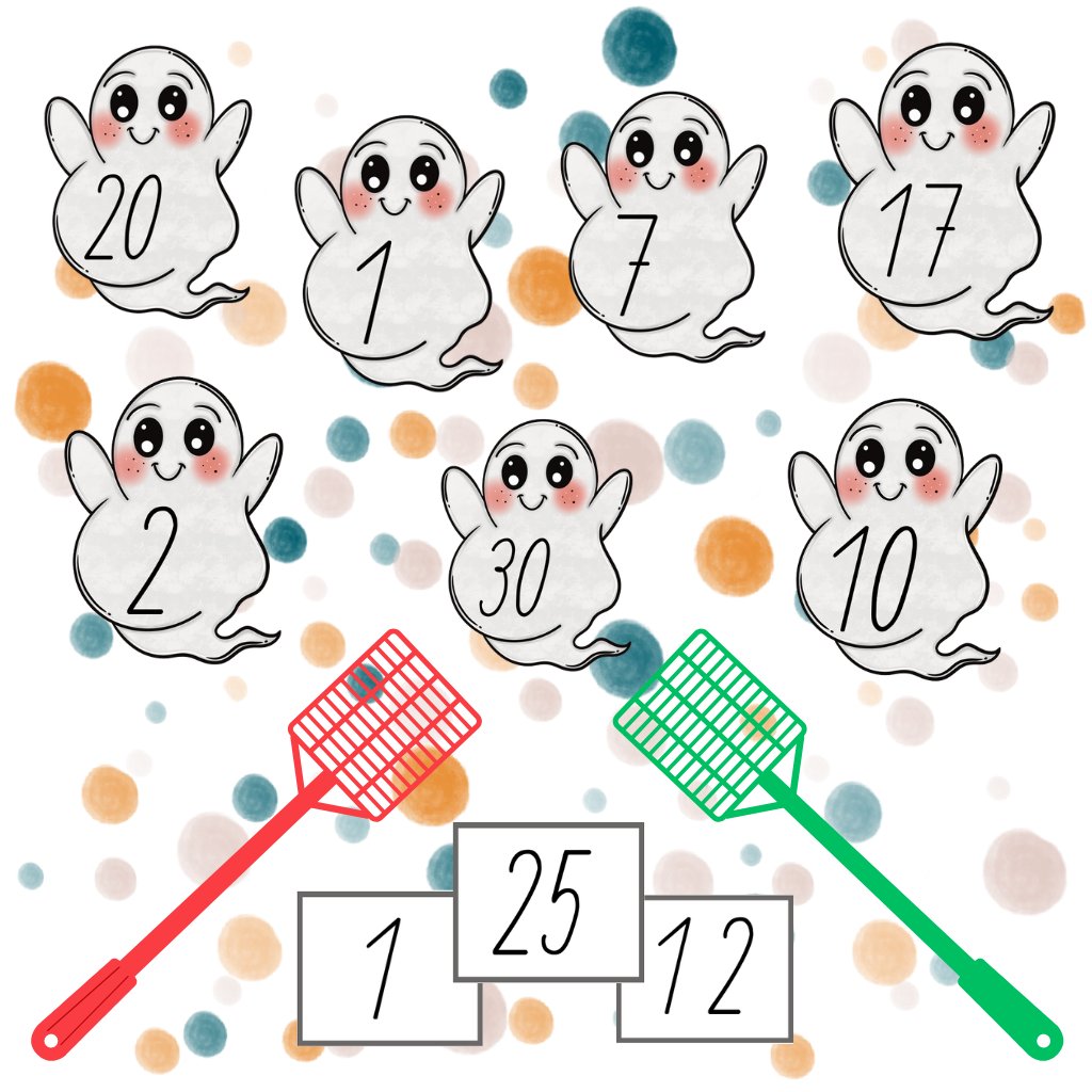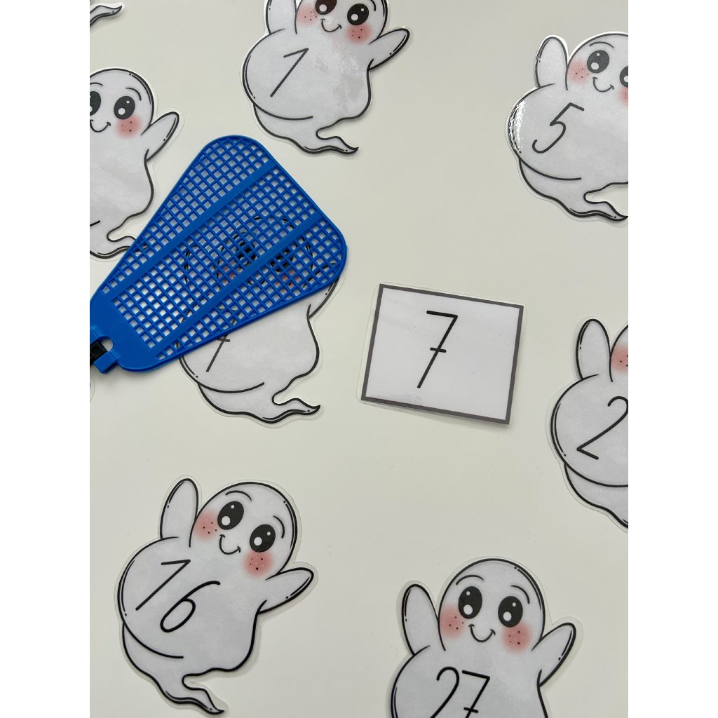 Plácni ducha je hravá aktivita, která dětem pomáhá zábavnou formou procvičit rozpoznávání čísel do 30. Materiál obsahuje celkem 60 kartiček – 30 kartiček se zadáním (číslo od 1 do 30) a 30 duchů, kteří dané číslo znázorňují.