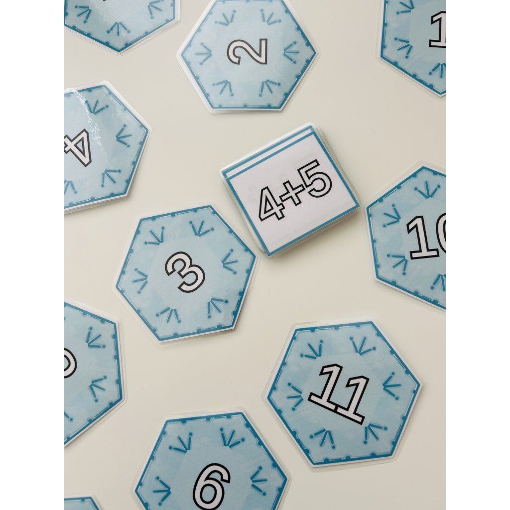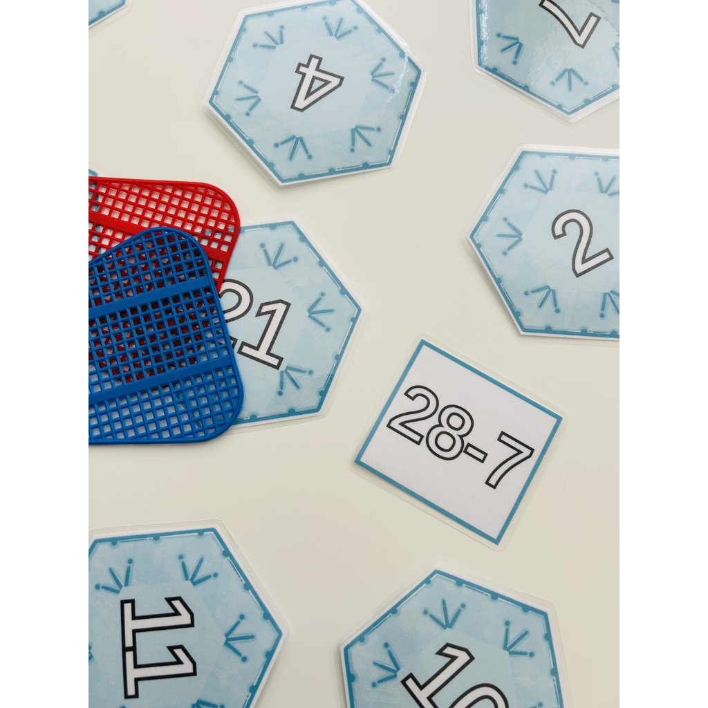 Plácni vločku je hravá aktivita, která dětem pomáhá zábavnou formou procvičit sčítání a odčítání do 30. Materiál obsahuje celkem 60 kartiček – 30 kartiček se zadáním (příklady) a 30 vloček, které znázorňují výsledky.