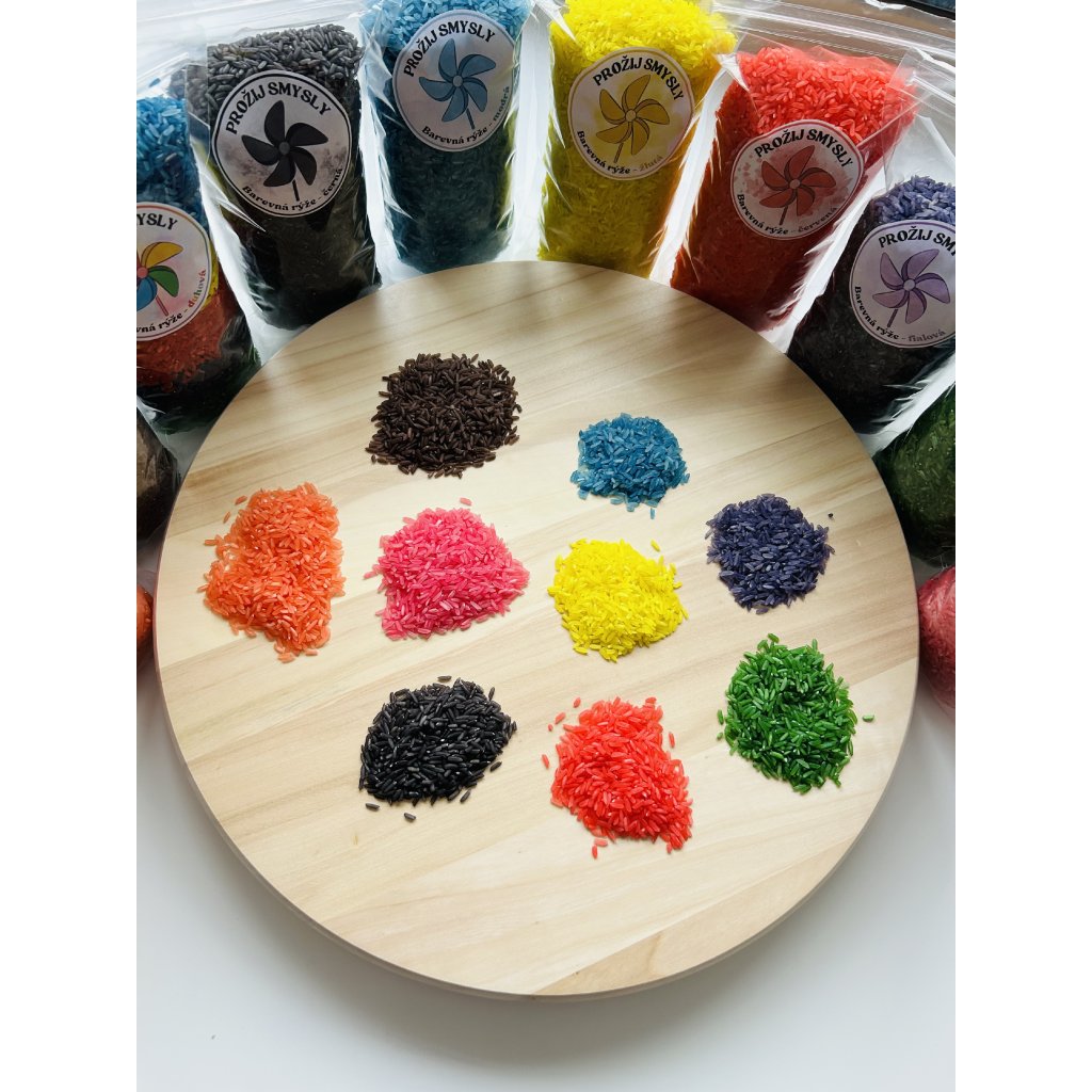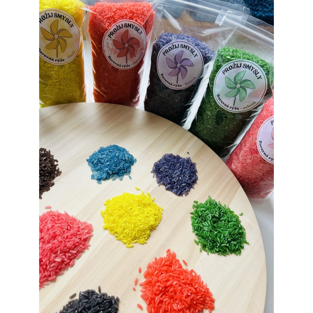 Děti mohou rýži přesýpat, třídit, nabírat, hledat ukryté předměty nebo vytvářet tematické herní světy. Barevná rýže je vhodná pro použití v domácím prostředí, mateřských školách i hernách. Skvěle se kombinuje s dalšími senzorickými materiály, jako je barevná cizrna, figurky, lopatky nebo prosýpávací pomůcky.
