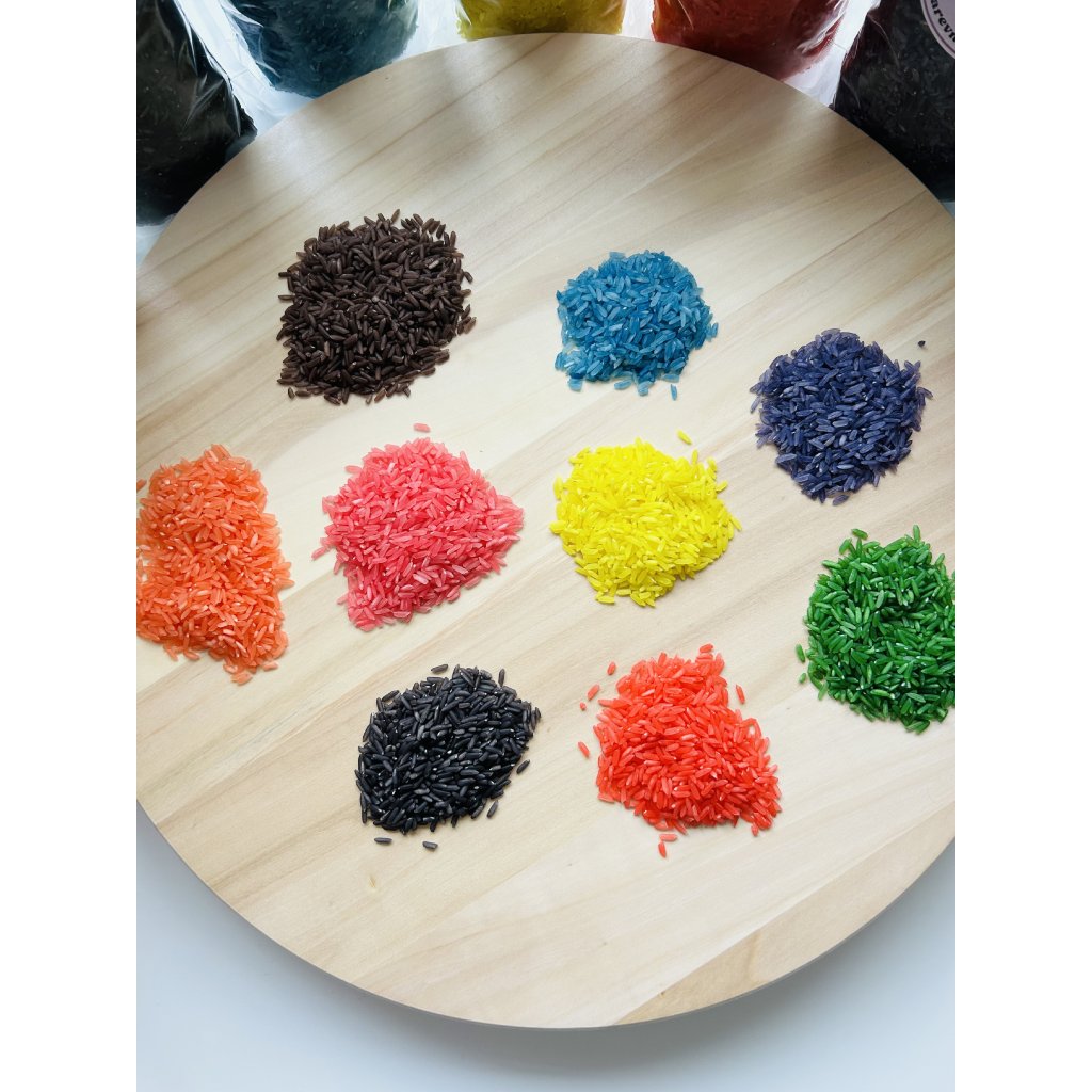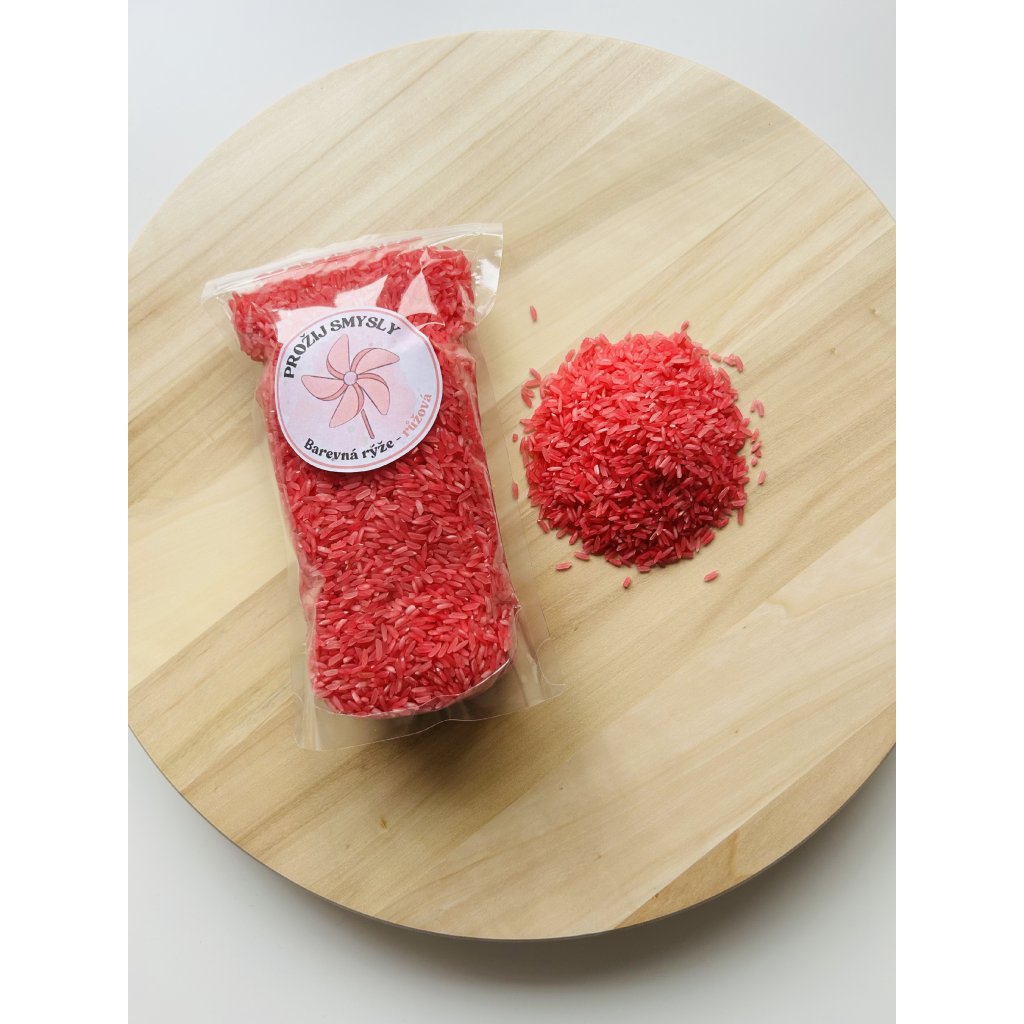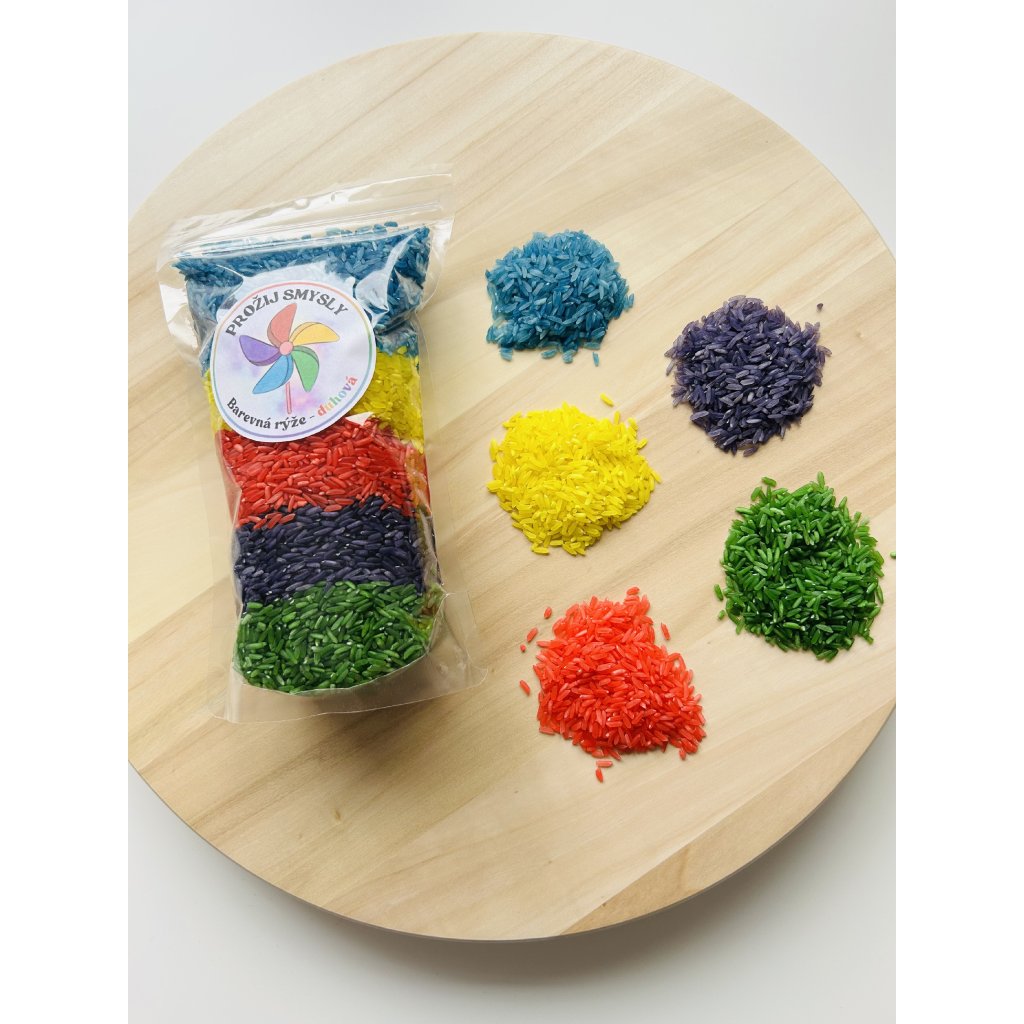Barevná rýže podporuje rozvoj hmatu, zraku, sluchu i jemné motoriky a pomáhá dětem objevovat různé struktury, barvy a vlastnosti materiálů.