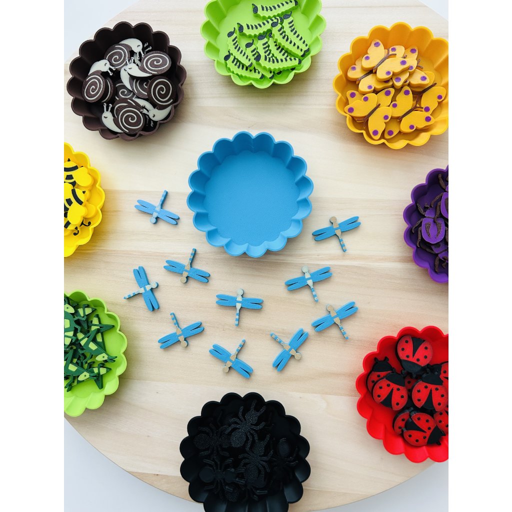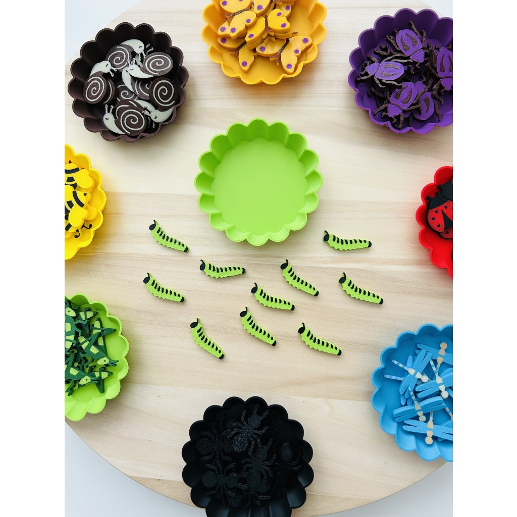 Balení obsahuje 10 ks barevných figurek hmyzu dle vašeho výběru a barevnou mističku.