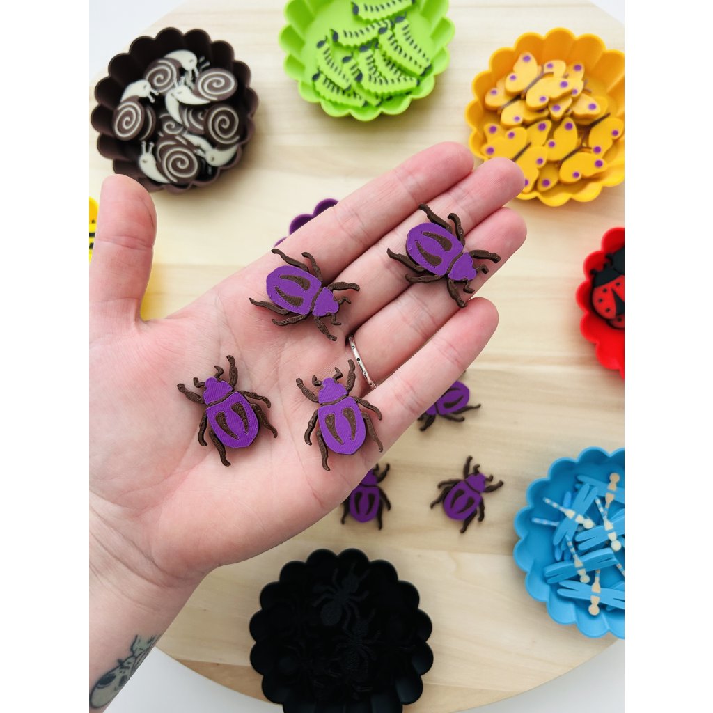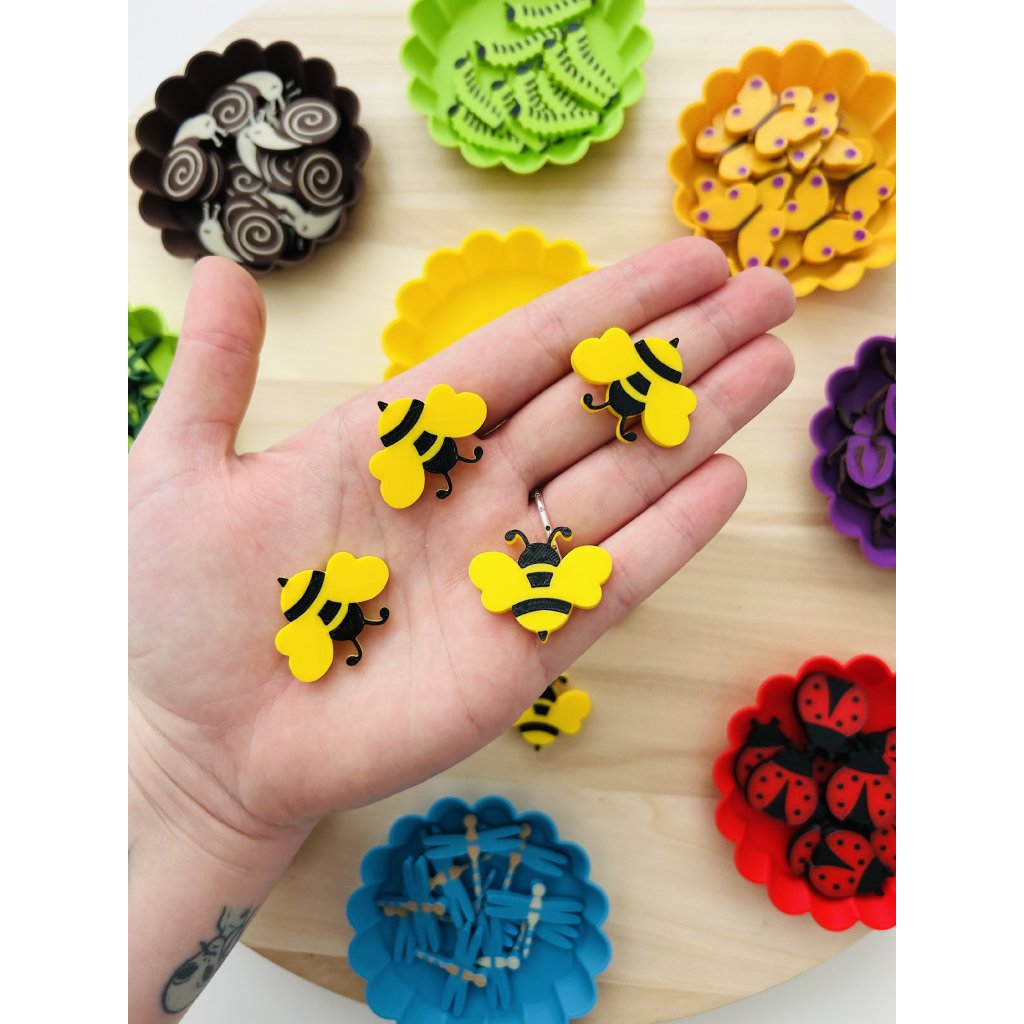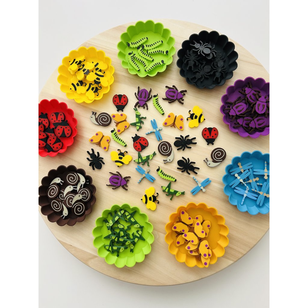 Hmyz můžete využít při tematických aktivitách o přírodě, v senzorických boxech nebo při hravém učení doma i ve školce. Děti mohou hmyz zkoumat, porovnávat, třídit i počítat – a přirozeně si tak budovat první matematické i přírodovědné představy.