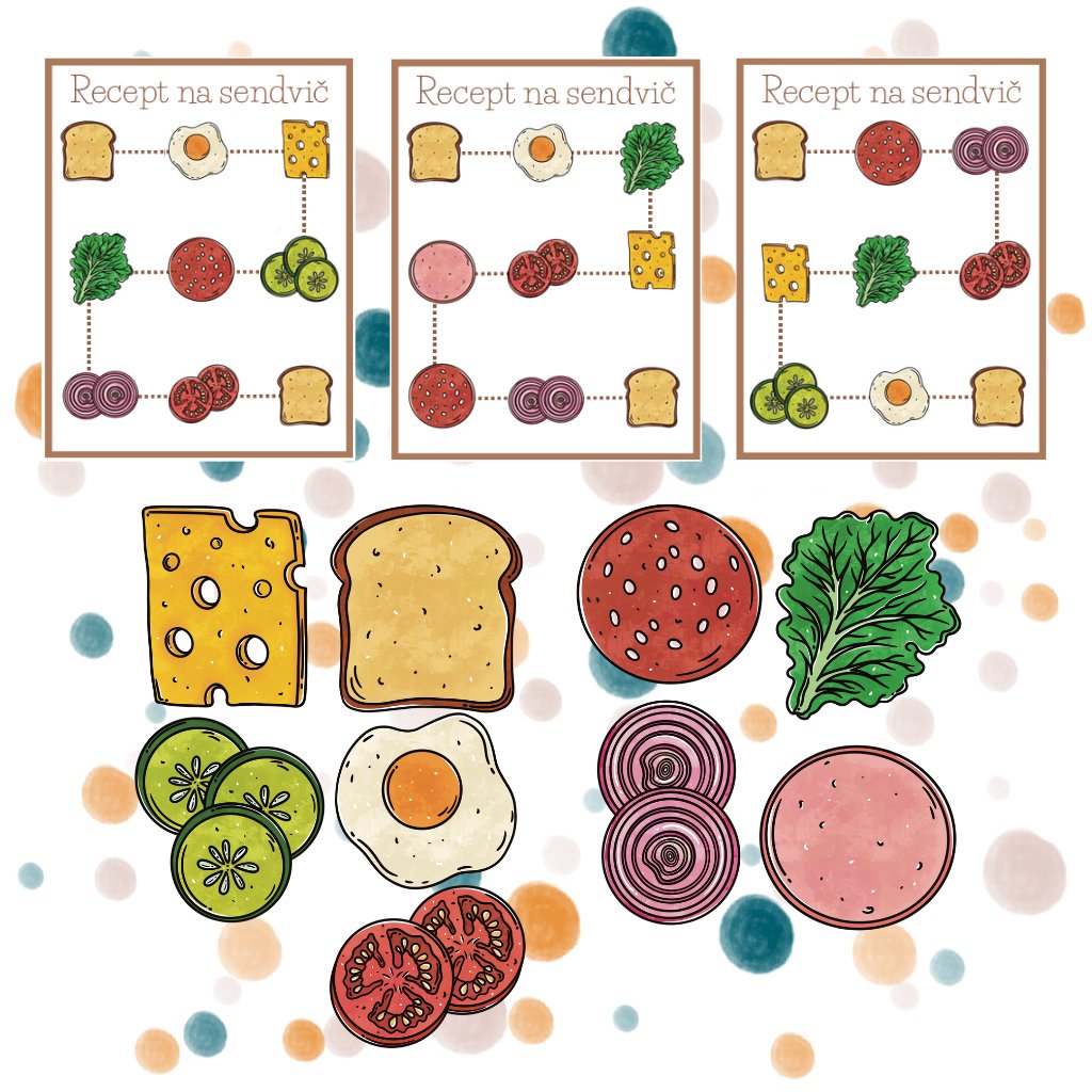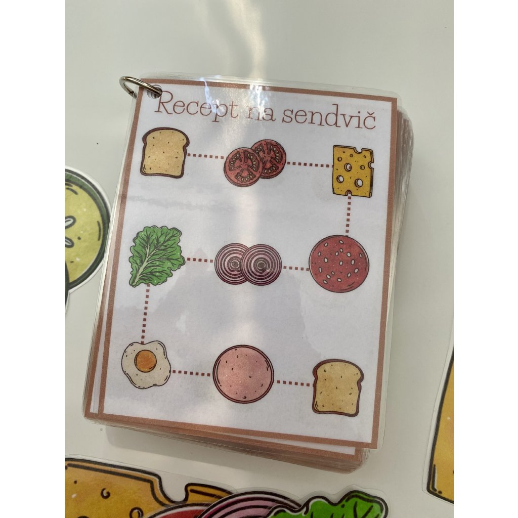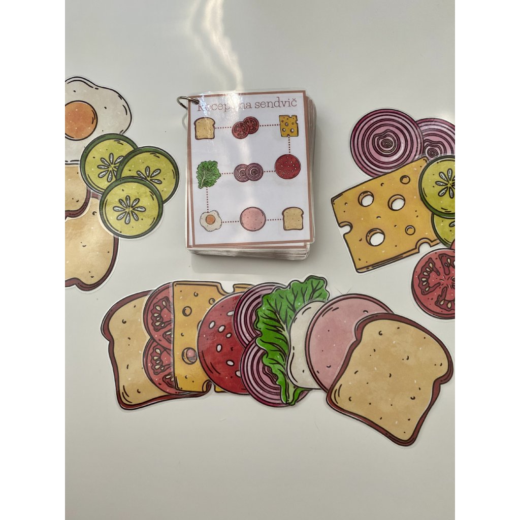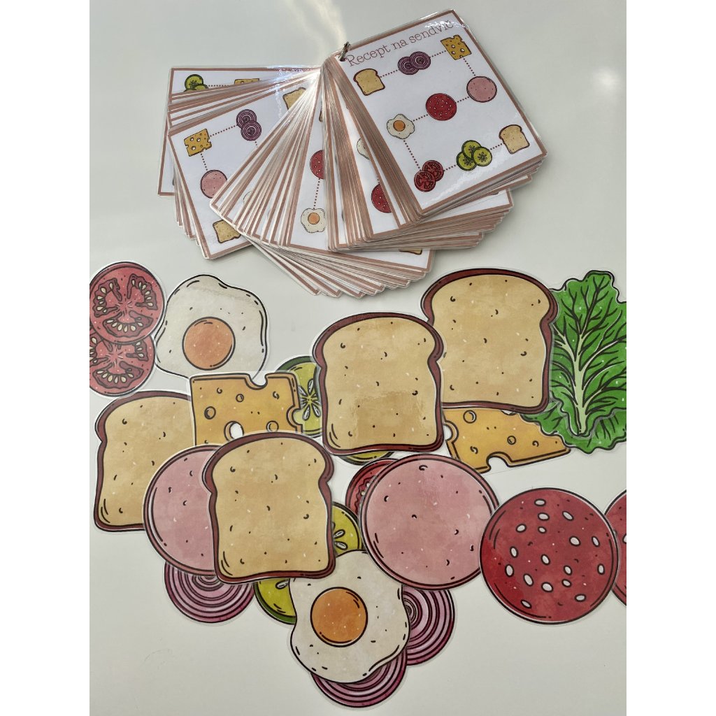 Děti si vezmou jedno z kartičkových zadání a podle něj skládají jednotlivé ingredience na sebe – začínají plátkem chleba, pokračují dalšími vrstvami a končí opět plátkem chleba. Díky ilustracím dokážou úkol zvládnout i nečtenáři.