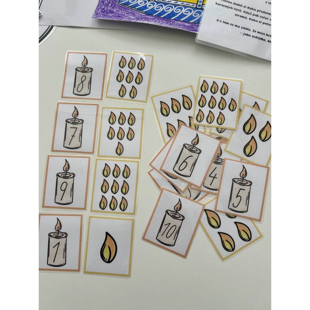 - kartičky svíček a plamínků – přiřazování čísel a počtů