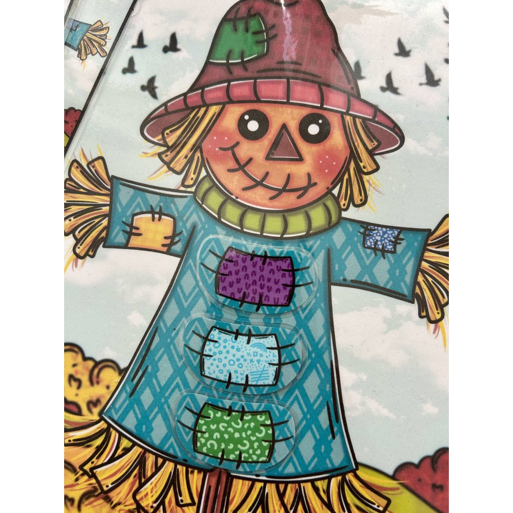 Strašák je vhodný i k vyprávění příběhu: „Strašákovi uletěly záplaty, pomůžeme mu je přišít zpátky?“
