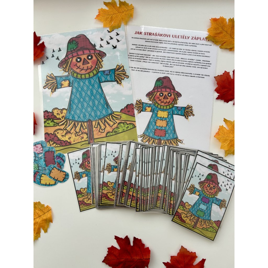 Materiál je koncipován jako zábavná didaktická hra, která propojuje příběh, barvy a dětskou fantazii. Součástí je obrázek strašáka ve formátu A4, 12 barevných záplat a 100 kartiček se zadáními. Úkolem dětí je podle zadání vybírat správné záplaty a přikládat je na strašáka tak, aby odpovídaly zadanému úkolu.