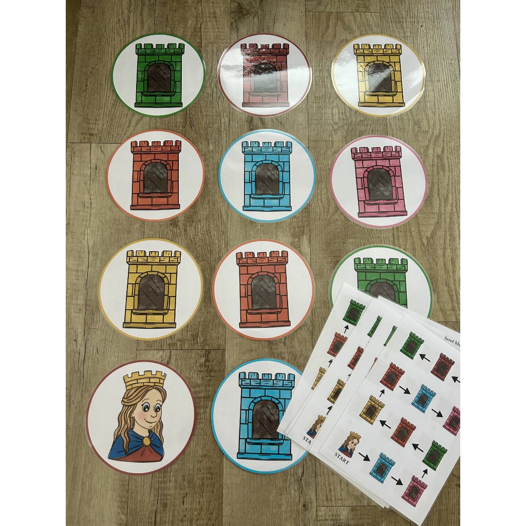 - Pohybové bludiště – 11 barevných věží + Barbora + 5 karet se šipkami