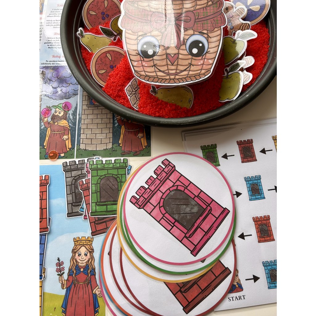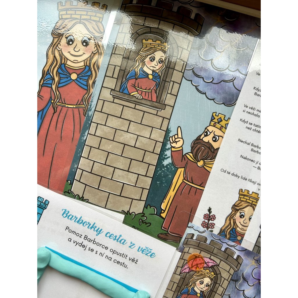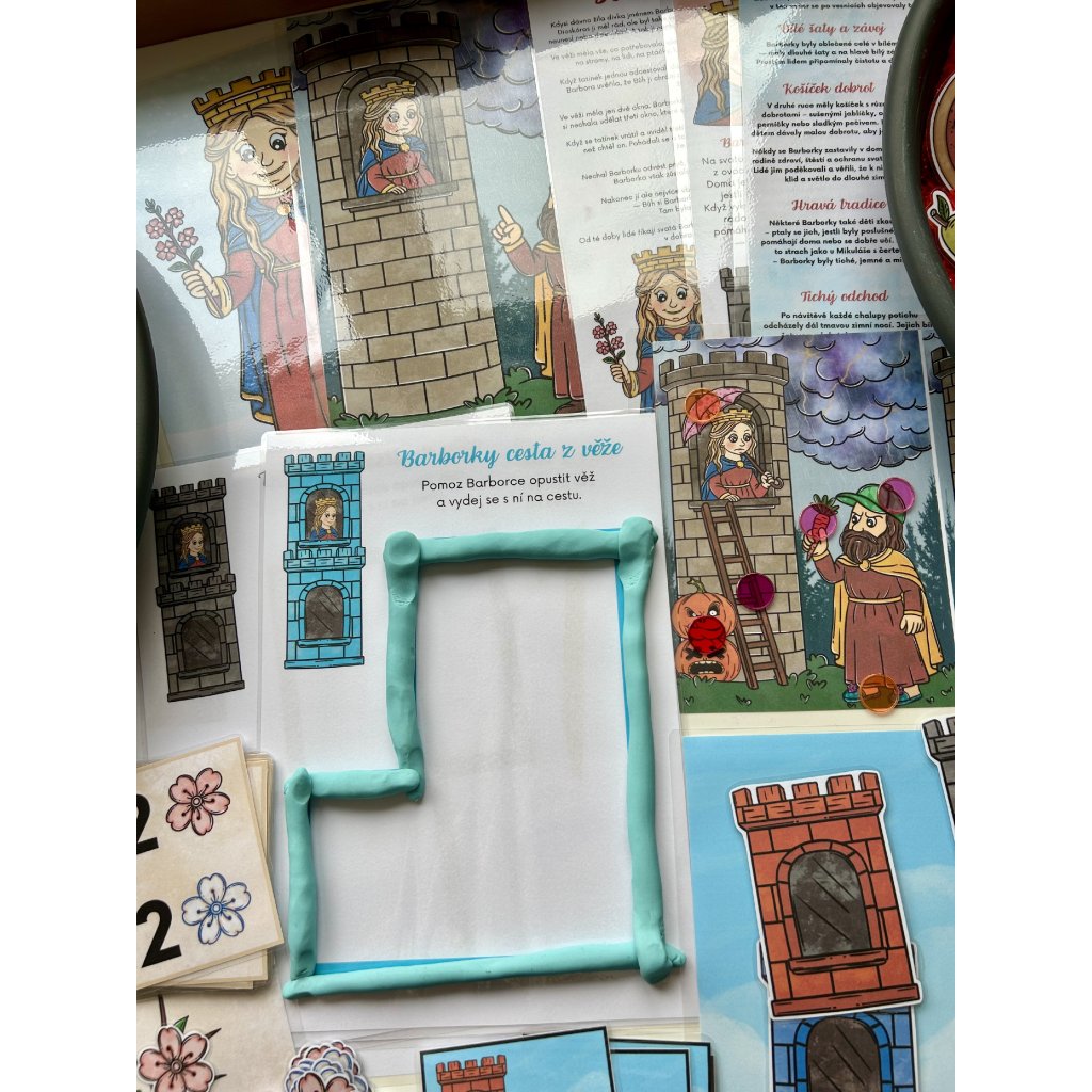 - Grafomotorické podložky s cestami Barborky z věže – pokládání předmětů nebo obtahování fixem