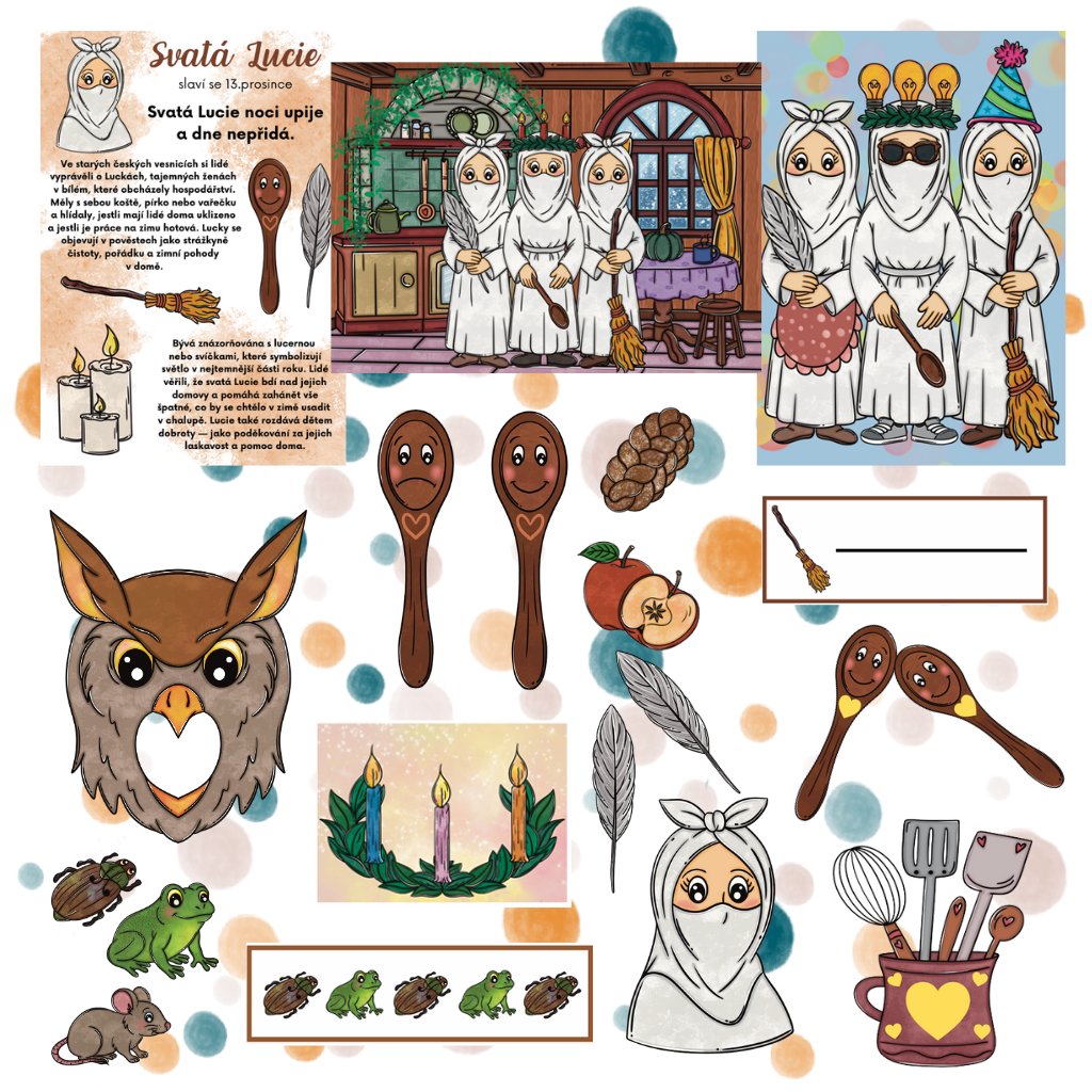 Objevte jedinečný tematický soubor aktivit zaměřený na tradici svaté Lucie a postavy Lucek. Materiál je vytvořený pro mateřské školy a nabízí bohaté propojení kulturních zvyků, smyslového učení, logických úkolů, pohybových her i předčtenářských dovedností. Vše doprovází krásné ilustrace a jasně popsané metodické postupy pro pedagogy.