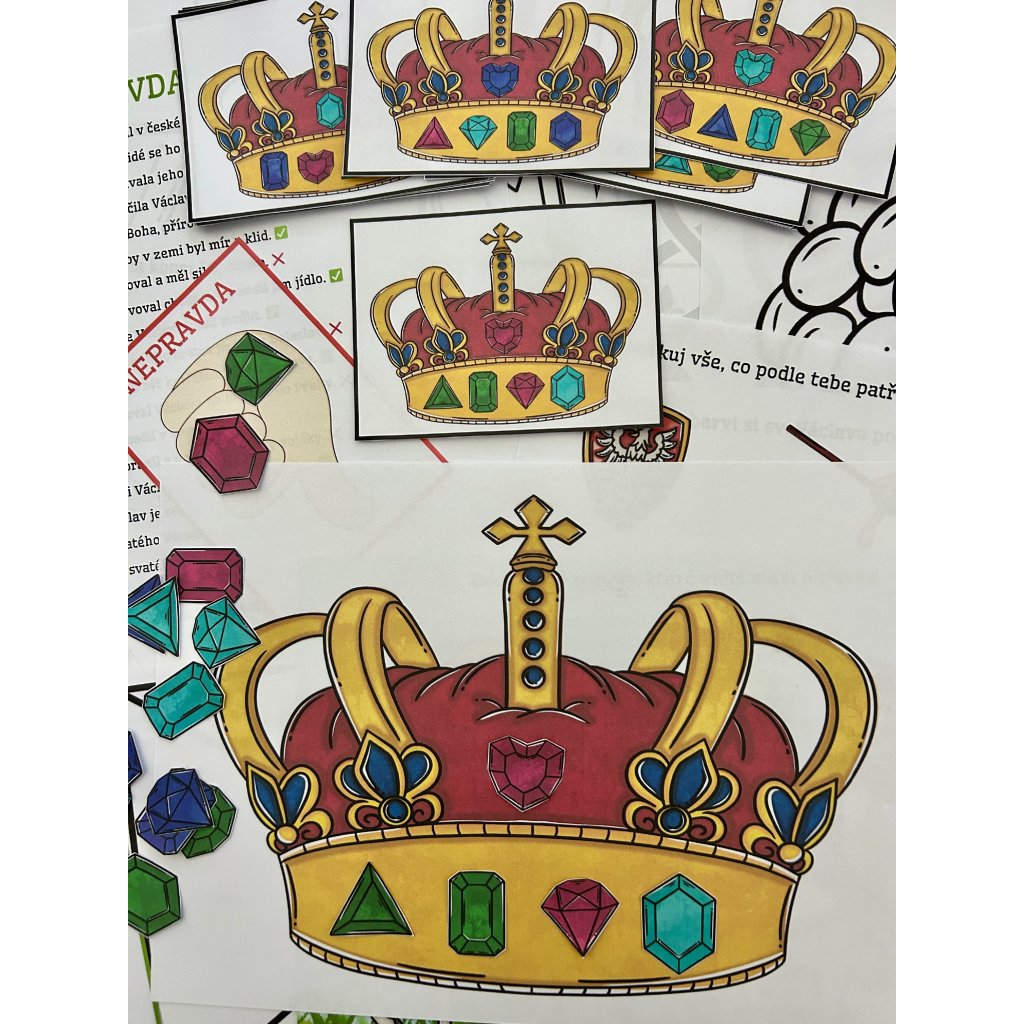 - Svatováclavská koruna – děti vybarví, ozdobí, vystřihnou a mohou ji buď vystavit, nebo nosit.