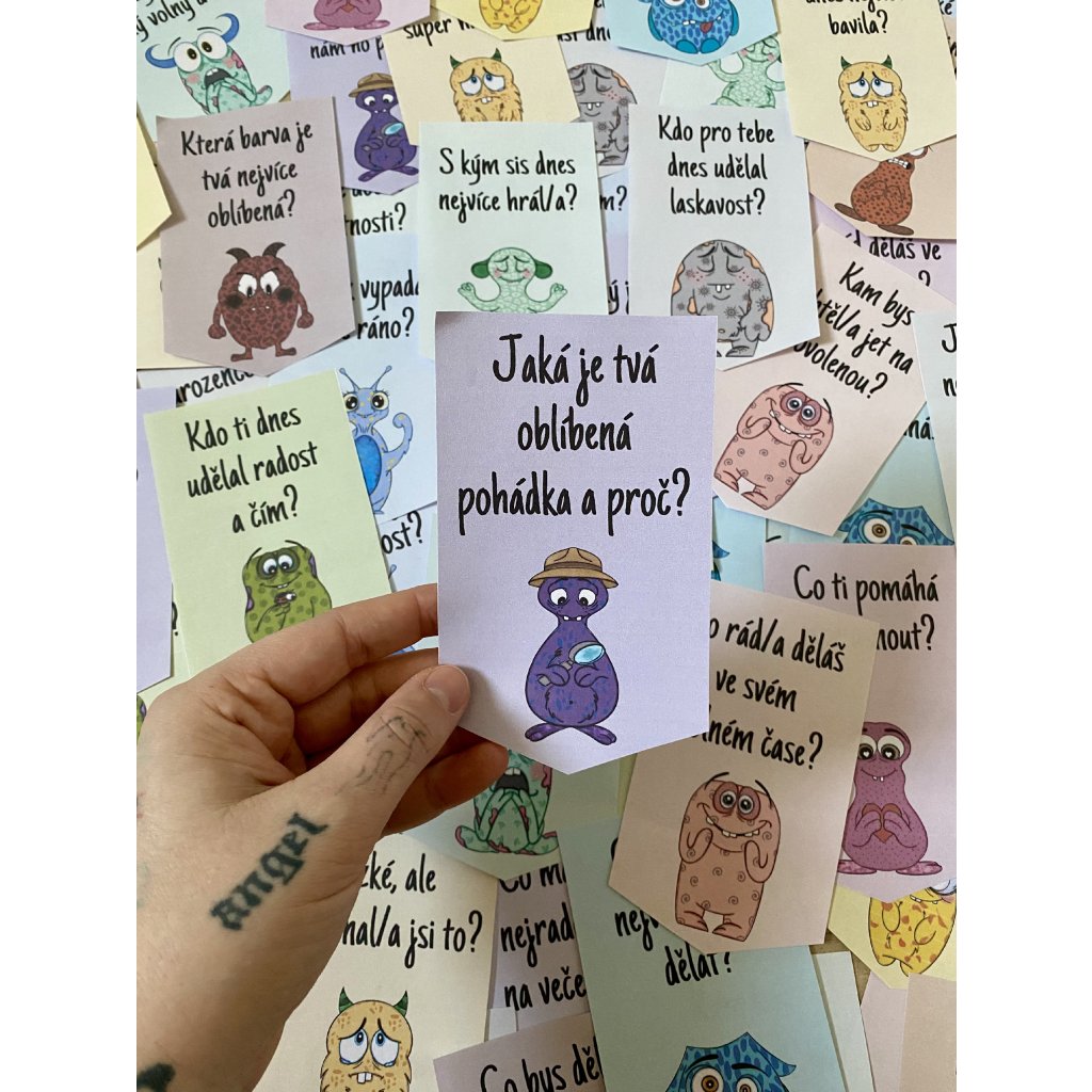 - Rozvoj komunikačních dovedností: Karty pomáhají dětem nejen odpovídat na otázky, ale také své odpovědi sdílet s ostatními. To je základní krok k rozvoji empatie a schopnosti naslouchat a porozumět ostatním.