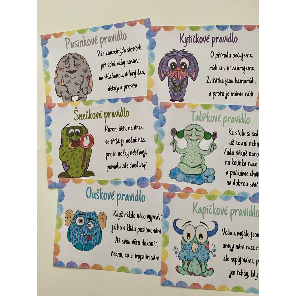 Pravidla třídy jsou skvělým způsobem, jak vytvořit jasná a srozumitelná pravidla pro děti v mateřské škole, která přispějí k lepší organizaci a harmonii ve třídě. Naše pravidla jsou prezentována formou veselých a snadno zapamatovatelných básniček, které děti nejen zaujmou, ale také jim pomohou si pravidla rychle osvojit.