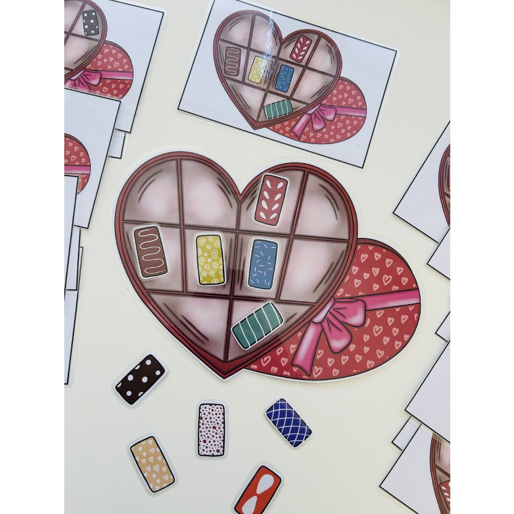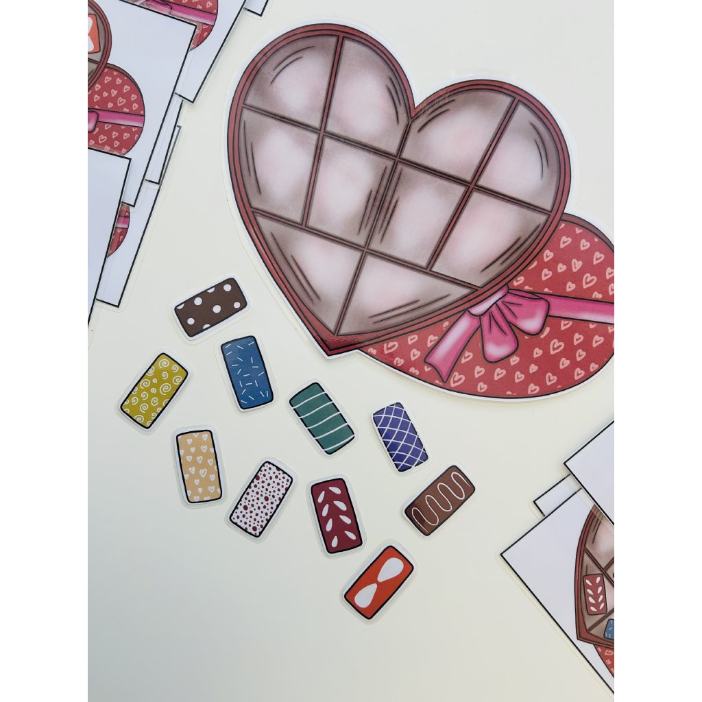Děti obdrží papír s prázdnou šablonou bonboniéry a deset různě barevných bonbonů. K tomu je přiloženo 20 zadání, podle kterých postupně skládají bonboniéru. Tato aktivita podporuje logické myšlení, prostorovou orientaci a schopnost pracovat podle instrukcí.