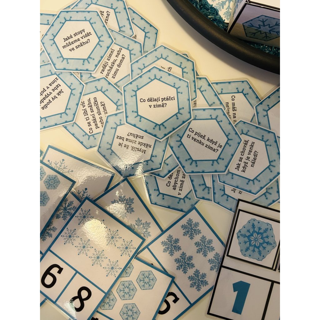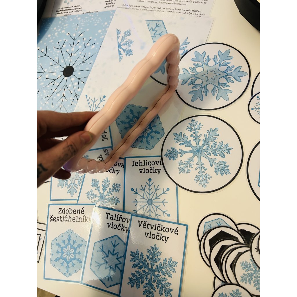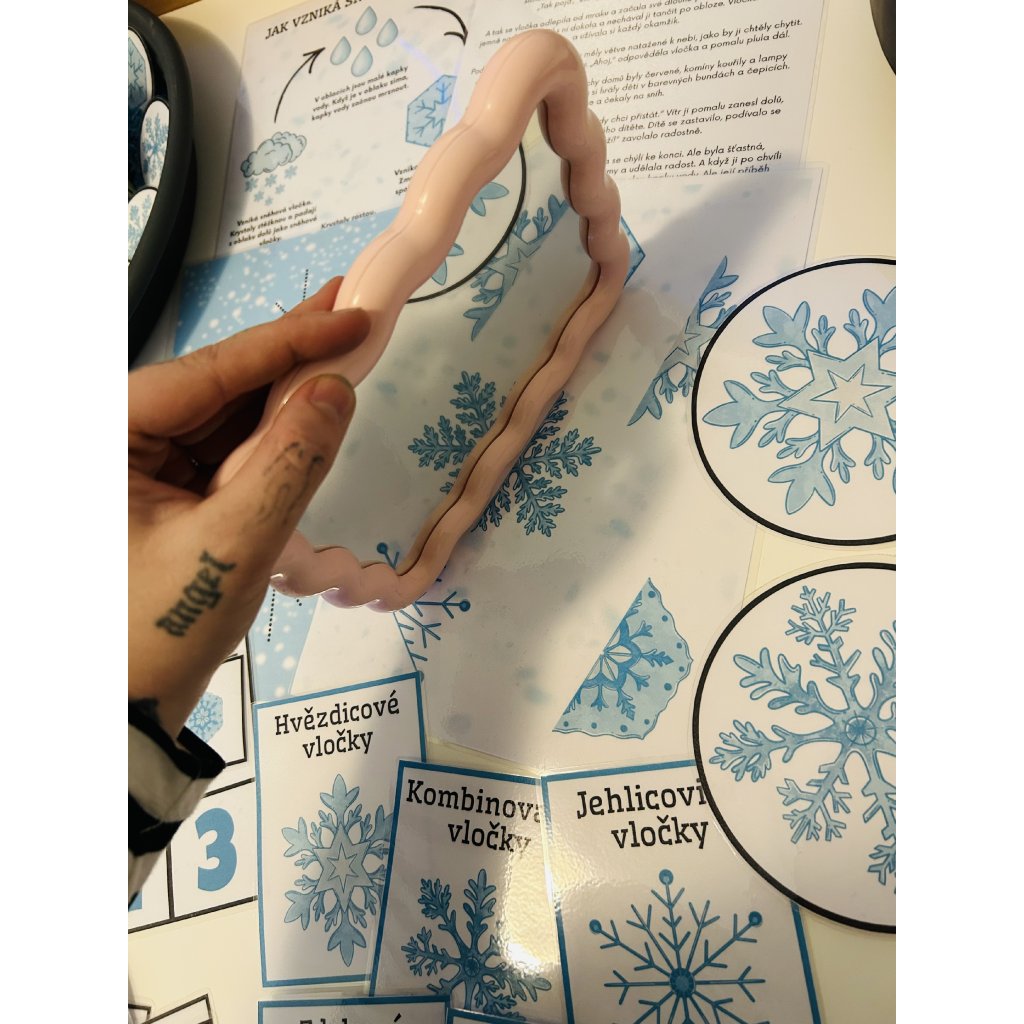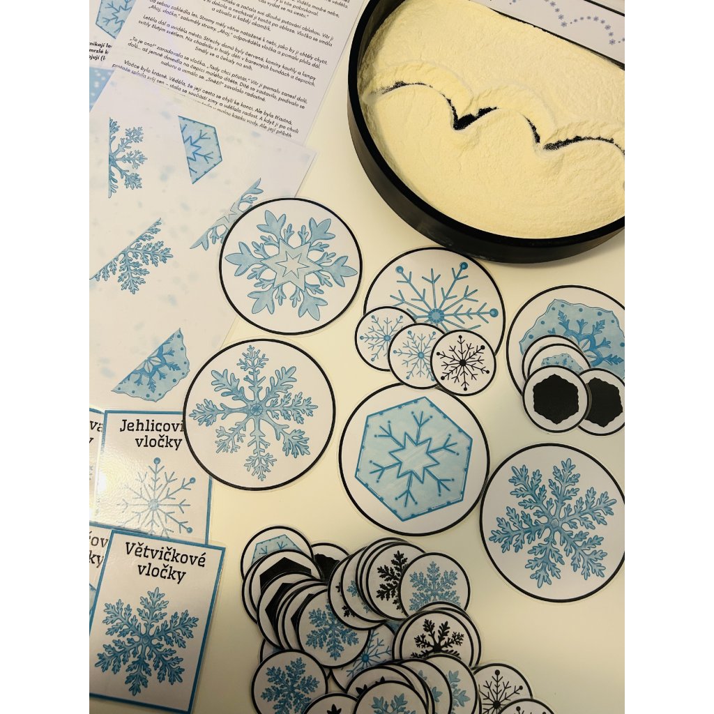 Ilustrované karty seznamují děti s různými tvary a názvy sněhových vloček. Rozvíjejí zrakové vnímání, pozorování a slovní zásobu.