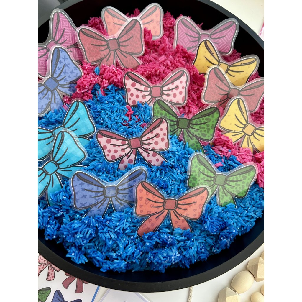 - návod na smyslohraní (hledání mašliček v rýži) + 8 dvojic mašliček