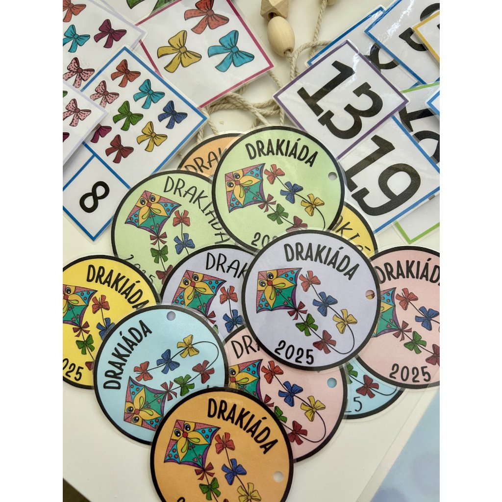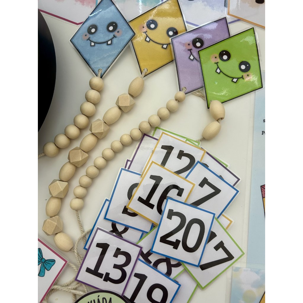 - 4 barevné draky + 20 kartiček s čísly (navlékání korálků podle čísla)