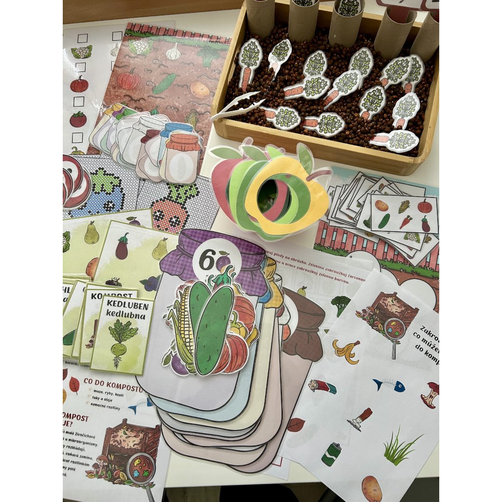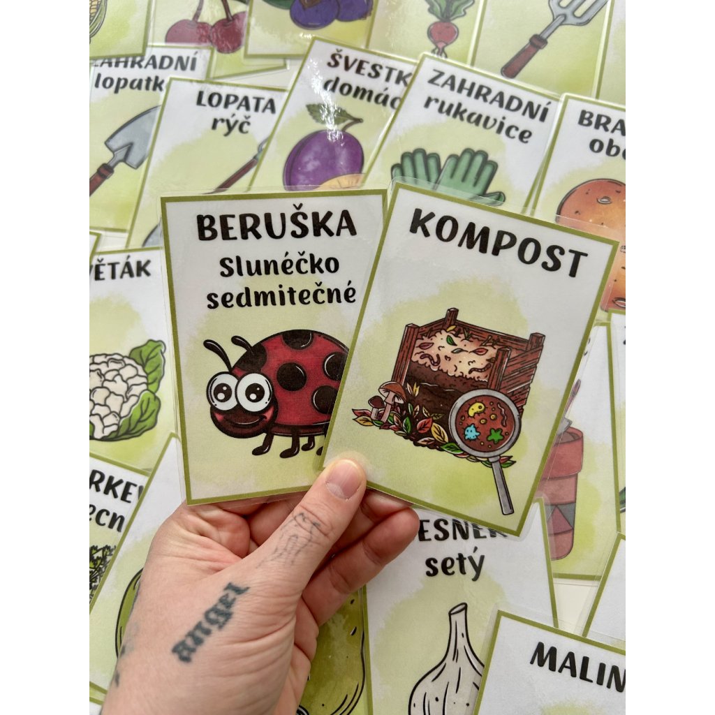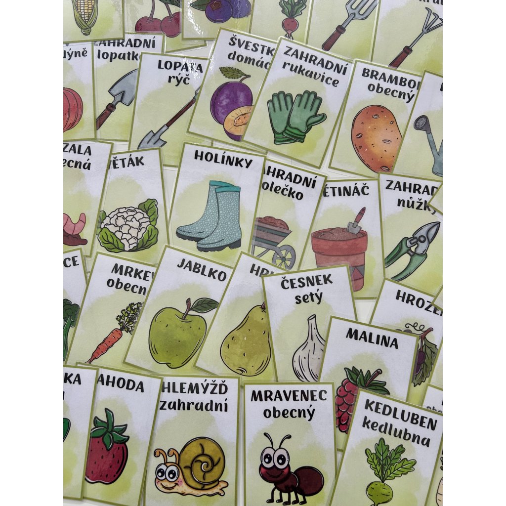 - demonstrační kartičky (nářadí, ovoce, zelenina, tvorové na zahrádce)