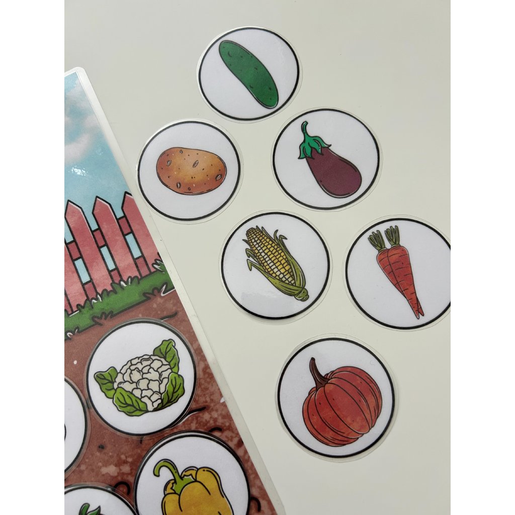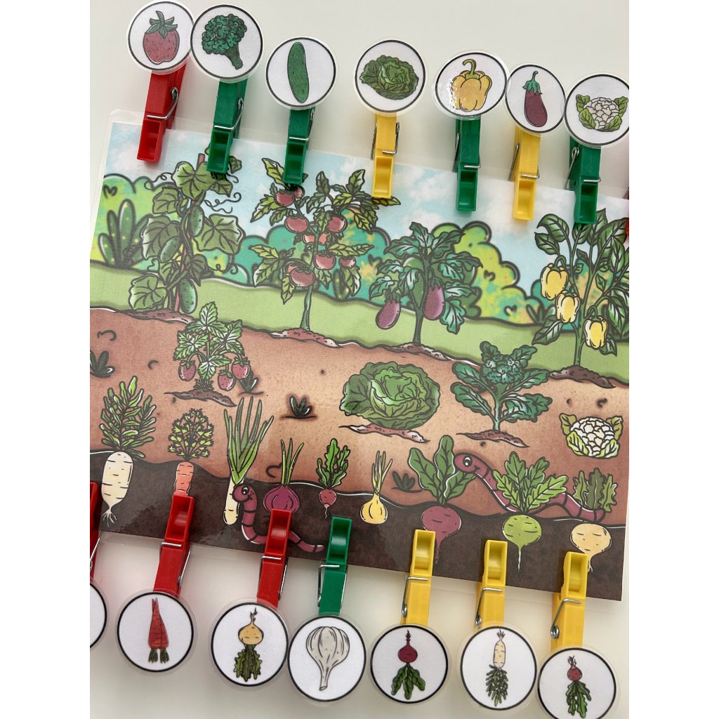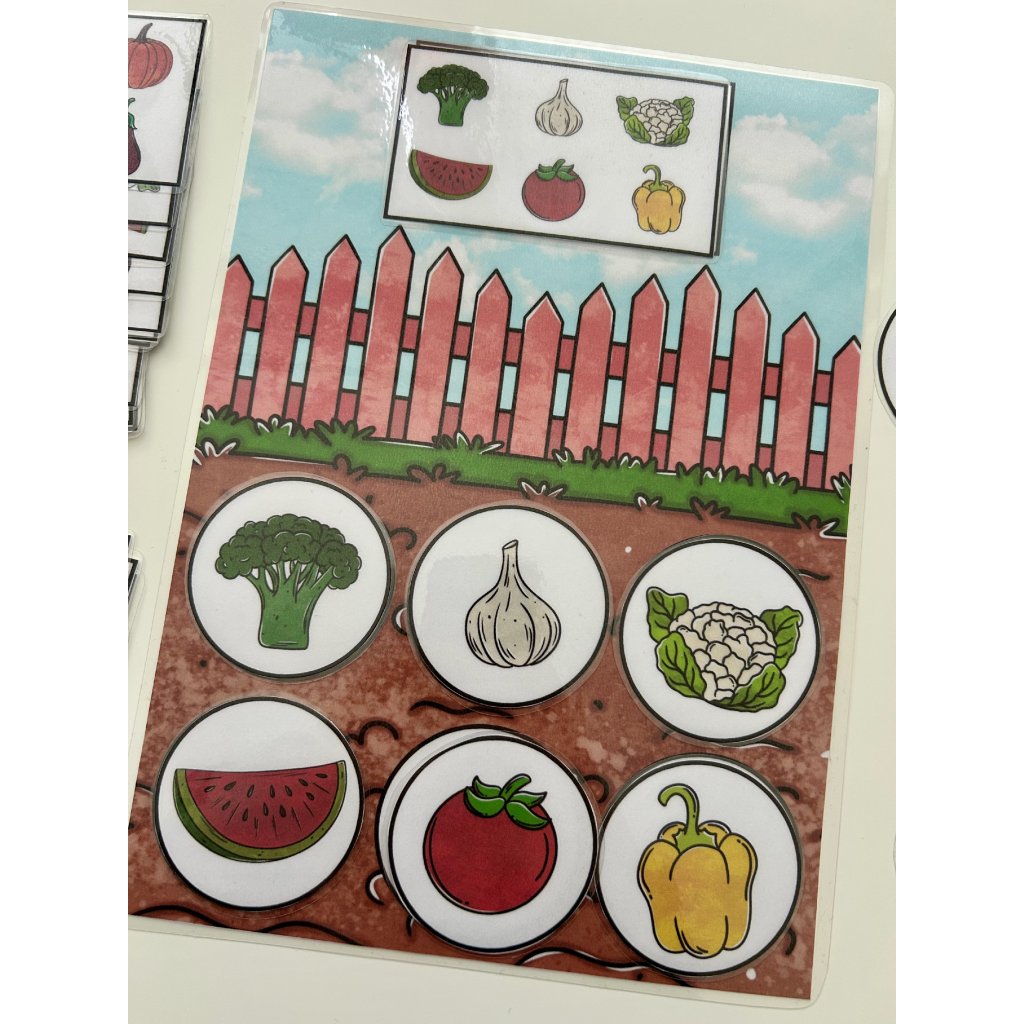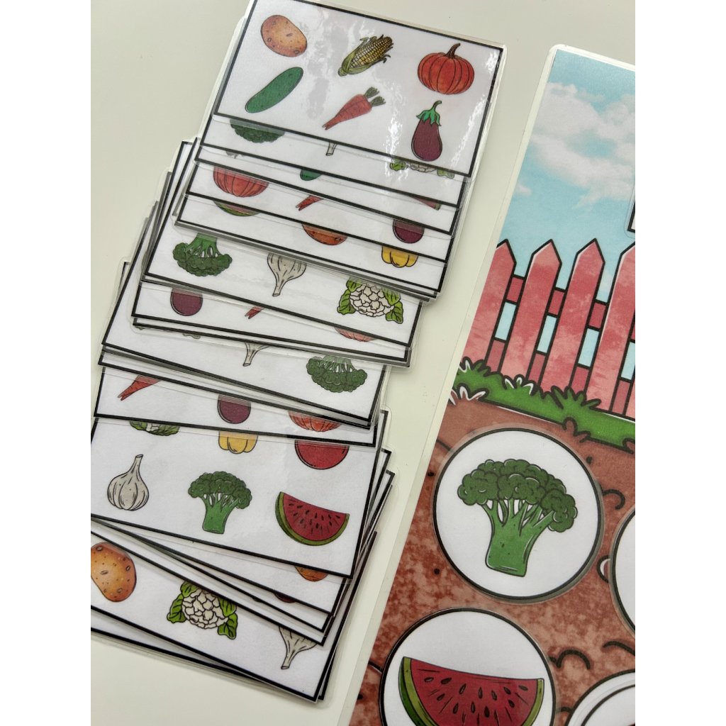 - demonstrační kartičky (nářadí, ovoce, zelenina, tvorové na zahrádce)